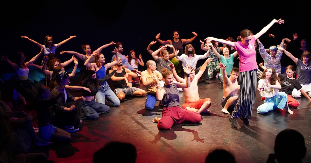 Talált tér c. darabunkban inkluzív csapattal dolgoztunk együtt, melyben neurodiverz fiatalok és kortárs táncosnak készülő diákok a tánc nyelvén fedezik fel egymást, és mutatnak példát egymás ítéletmenetes elfogadásából